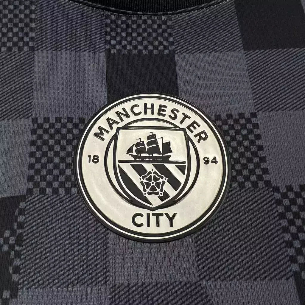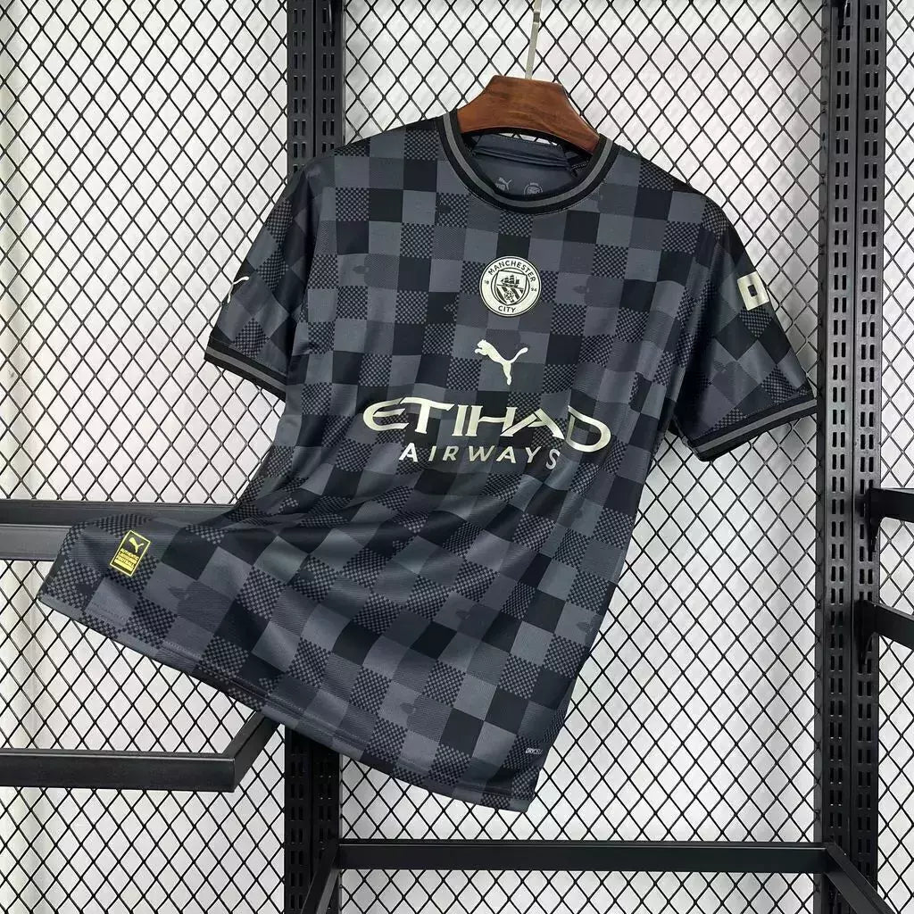 Com detalhes únicos e acabamento premium, a camisa combina estilo urbano com a essência do Manchester City. Produzida em tecido tecnológico leve e respirável, oferece conforto máximo e excelente caimento, sendo perfeita tanto para o uso casual quanto para momentos especiais de jogo.
